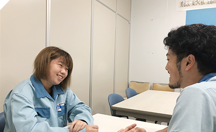私の職場では、入社した後、まずは安全教育から始まり、測定業務・運搬作業などの基本作業を行い、徐々に作業の種類を増やしながら仕事をしてもらいます。作業を行う上で作業の手順は全て標準書(マニュアル)に書かれていますので、その標準書を読み、理解する読解力が必要となります。また職場内での挨拶、報連相は必要不可欠です。はじめは不安なことも多いかと思いますが、向上心を持ち、何事にも全力で取り組んでいきましょう。